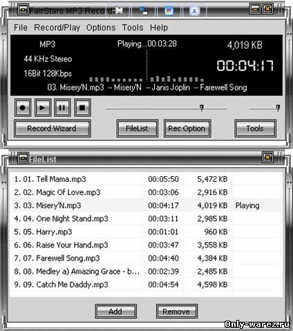 FairStars MP3 Recorder является простейшим в использовании